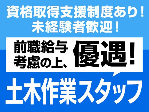 | 仕事内容 | 公共・民間工事の現場で、掘削・埋戻し作業、重機作業補助、配管・構造物設置補助、資材運搬、現場整理など。 現場作業に必要... |