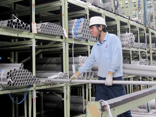 ステンレス材料の工場内作業スタッフ