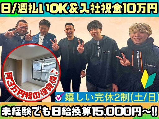 | 仕事内容 | マンションなどの賃貸物件を“元通り”にするお仕事! 住人が退去した後の部屋を、次の入居者が気持ちよく住めるように整える「... |