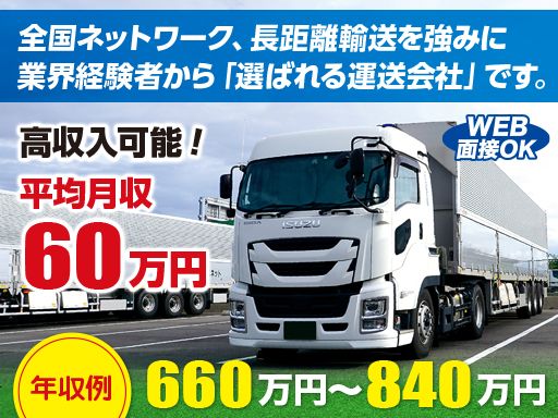 | 仕事内容 | リフト物などの輸送がメインになります。長距離と地場の併用運行、地場のフリ-運行、地場の定期運行を選べます。 【エリア】... |