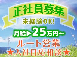 | 応募資格 | 高卒以上、経験不問 ※要普通自動車免許(AT限定可) ☆営業経験者優遇 |