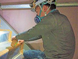 アスベストって危険では?そう思われる方も正直多いと思います。確かに危険性の高い物質ではありますが、きちんと対策すれば大丈夫です。当社ではアスベストの除去について、安全面もしっかり対策しております。しっかりとした研修はもちろん、マスクや防塵服など仕事に必要な道具は会社で準備しており、1日4回の防塵服の着替えなども徹底しておりますので、ご安心ください。
