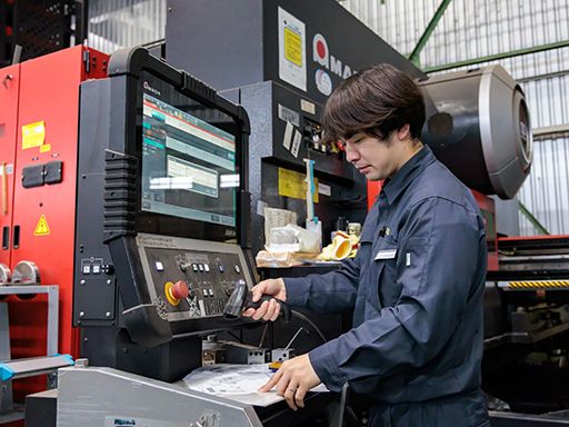 正直最初は自信がなく、不安でしたが、先輩がイチから丁寧に教えてくれました!さらに、自分で操作するたび「ボタンAを押したときの機械の動き」や「ボタンBでセットした金属板の位置が戻る」といった仕組みの理解が深まり、自信につながりました!このように、仕事をしっかり覚えられるので未経験者も安心してください!