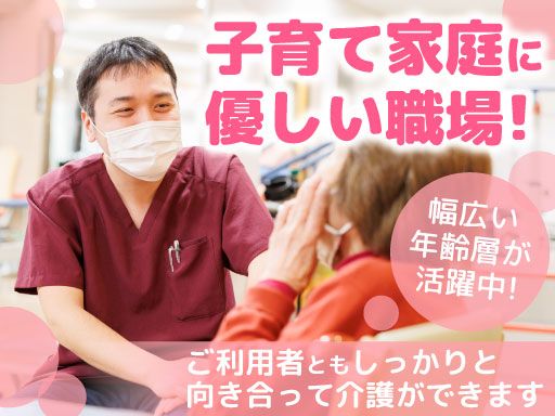 | 仕事内容 | ご利用者さまがいきいきと充実した日々をおくれるように、一緒にサポートをしましょう。 施設内での健康チェックや日常で必要... |