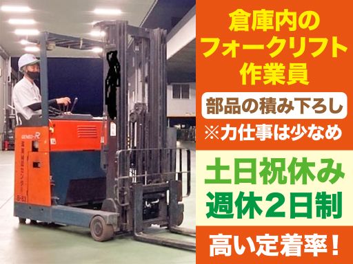 | 仕事内容 | 倉庫内でのフォークリフト作業を中心にお願いいたします。 <主な業務> ◆フォークリフトを使用した入出庫作業 ◆ピッキング... |